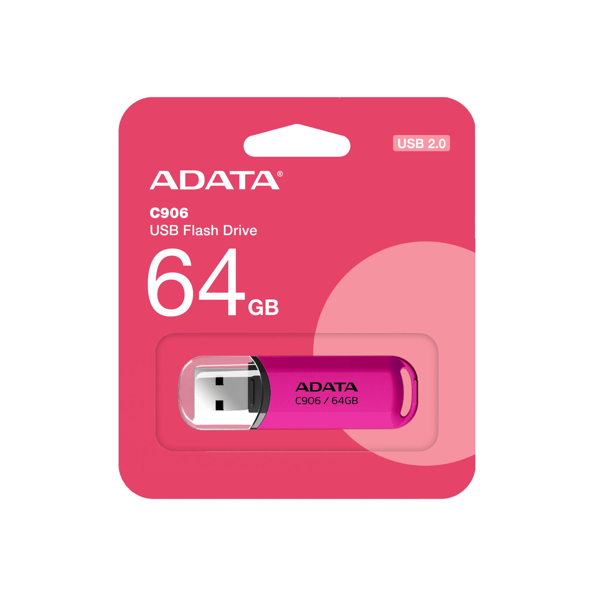 Adata 64Gb Usb2.0 Flash Drive C906 Pink, Integral Strap Mount